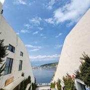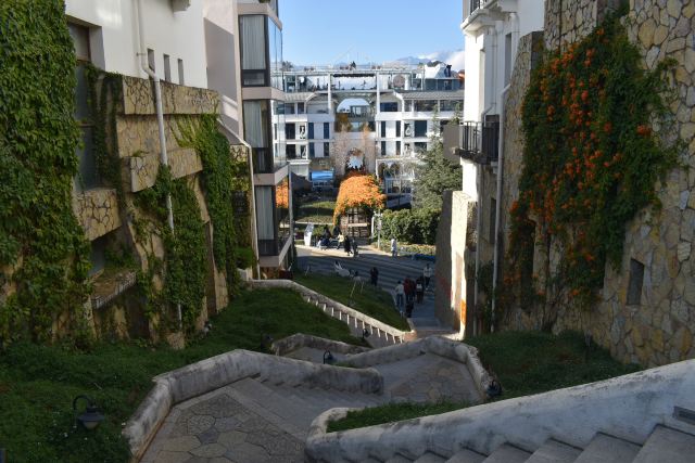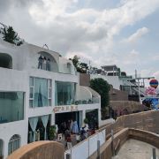 5分 超棒(1)修在山坡上的一个购物商城,都是可以进去的,对面有停车场10元一次,早上10点开门,去的早的话可以沿着河边逛一逛,有一个码头,风景也是不错的。网上很多出片的地方在理想花园,这个需要收费