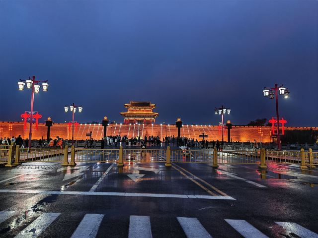 5分 超棒大名府的古域夜景色彩斑斓,古城墙和城楼在灯光的照耀下显得格外醒目。城墙被暖黄色的灯光照亮,散发出柔和的光芒,街道两侧分布着多座传统风格的房子,屋顶上也装点了彩灯,营造出热闹非凡的氛围。古色古香的城楼在夜色中被暖黄色的灯光照亮,显得格外醒目,俯瞰老街的夜景别有一番风味,两旁商铺红白相间的招牌清晰可见,蓝砖木板门陈述着它曾经的历史。