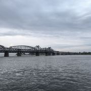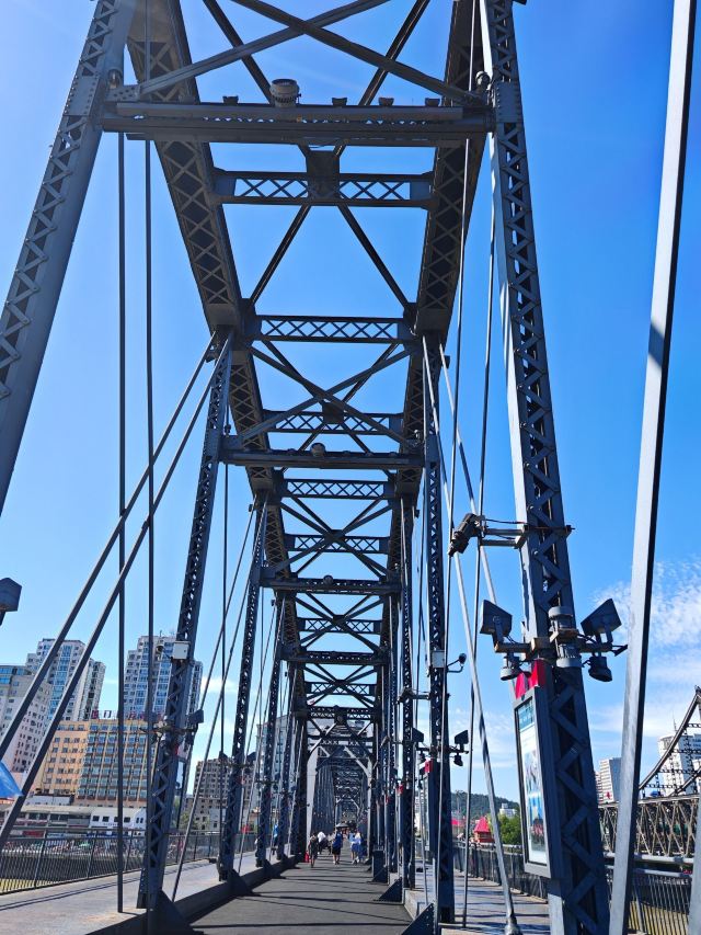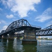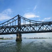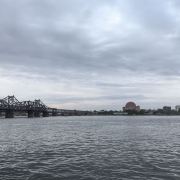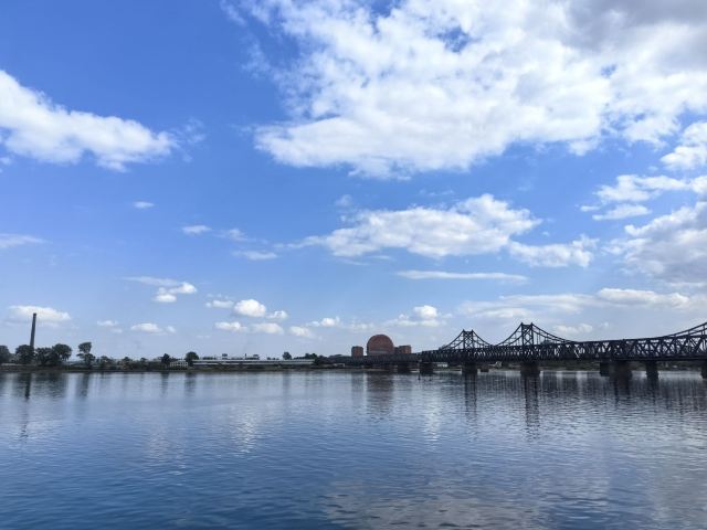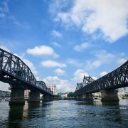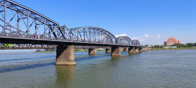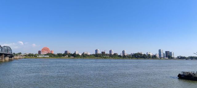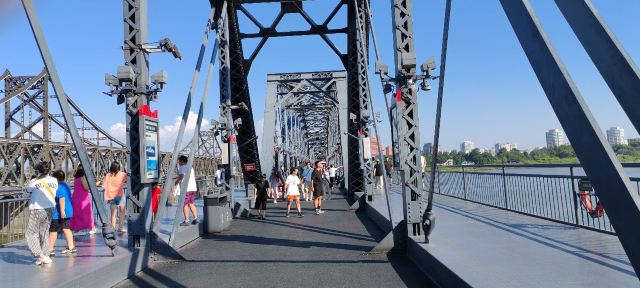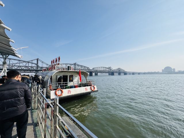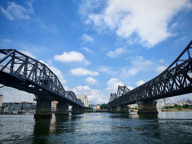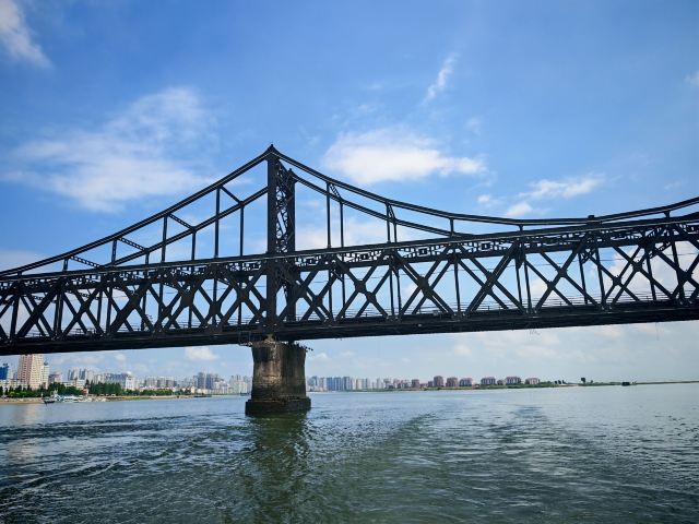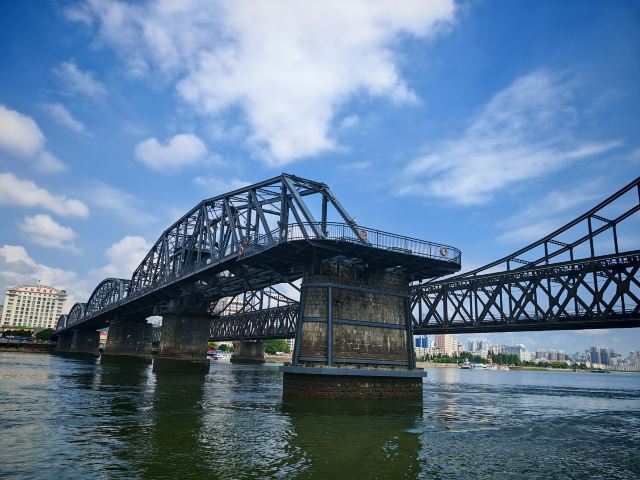 战后中方一侧所剩四孔残桥一直保留,被习惯上称为“断桥”,朝方一侧则把所属六孔和中方剩余两孔残桥拆除,仅存桥墩。 乘船游览这里,看鸭绿江两岸,一揽两岸景色。