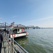 5分 超棒乘坐丹东鸭绿江游船可以游览鸭绿江两岸风光,清晰地参观到朝鲜威化岛、将军楼、志愿军浮桥过江处、鸭绿江断桥、中朝友谊桥等,水上参观全貌一览无遗
