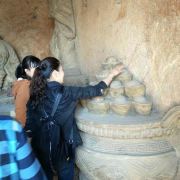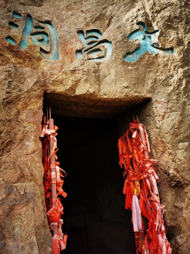 更为神妙的是在悬崖绝壁上分布着如鬼斧神工般地十二个大小形状各异的摩崖石窟,神秘莫测,洞内凿有,诸神塑像和浮雕,隐藏着“儒、道、佛”三教之玄机,历代诸教名人曾在这里修行,晋代著名道士葛洪修炼于此,道教南派初祖张柏端就是其中之一。