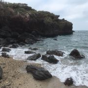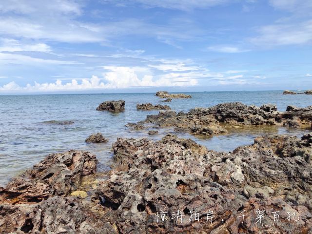 5分 超棒龙门激浪是一片火山岩海滩位于海南省儋州市峨蔓镇海滨龙门山,龙门山为海滨岩石山,海拔39米,山上怪石嶙峋,从北望南,绵延起伏,状似万里长城,十分壮观。山之东有一瓮门,高兴30多米,宽20来米,中空通风,岩石呈拱形,素称"南天第一门"。北风吹来,卷起巨浪,撞击在石门上,浪击石鸣,犹如击鼓,响彻10余里,故得名“龙门激浪”。这里绵亘4公里的海岸,沙滩洁净,巨石千姿百态,风景别致,站在岩石观涛,心旷神怡,龙门激浪于明代得名, 受游人称奇。前清拔贡陈有壮题有七绝一首:"龙门峭石势嵯峨,远望潮来卷白波。漫道艰难惊蜀道,吾乡仍有险途多"诗中写景含情,耐人寻味。