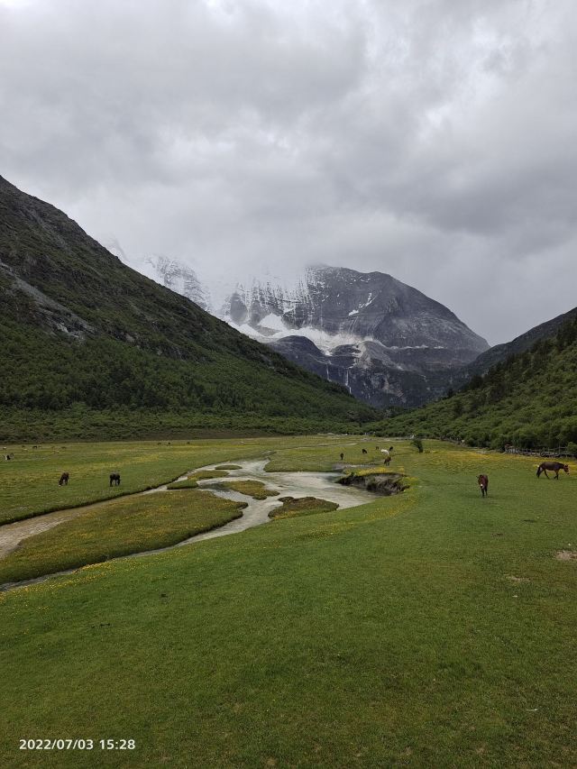 如果不上牛奶海,洛绒牛场的景色也能让人驻足停留久久不能忘怀,很多已经产生高原反应的游客就在这里折返了。