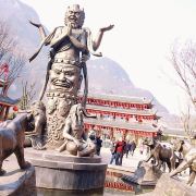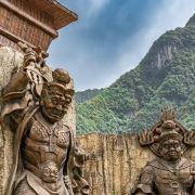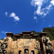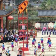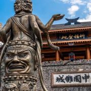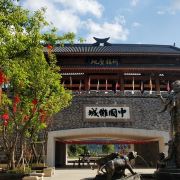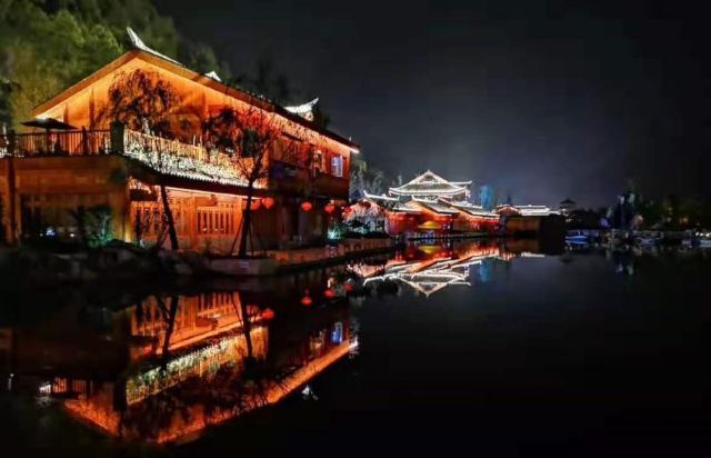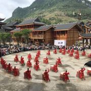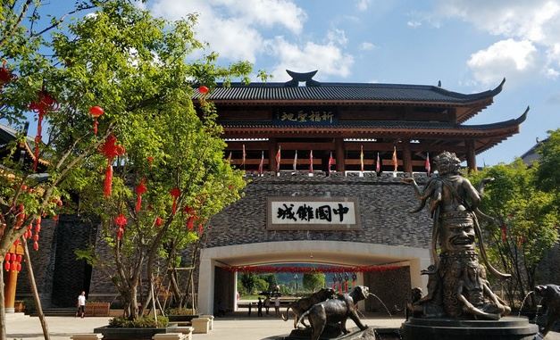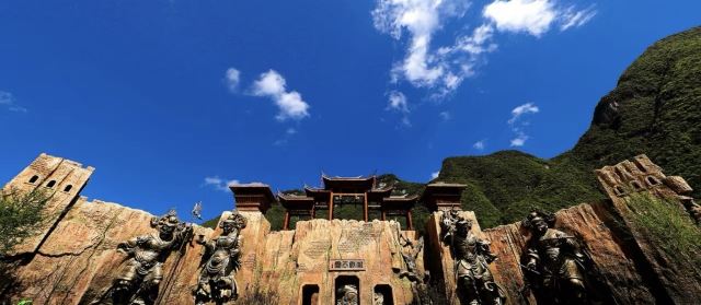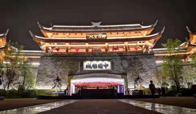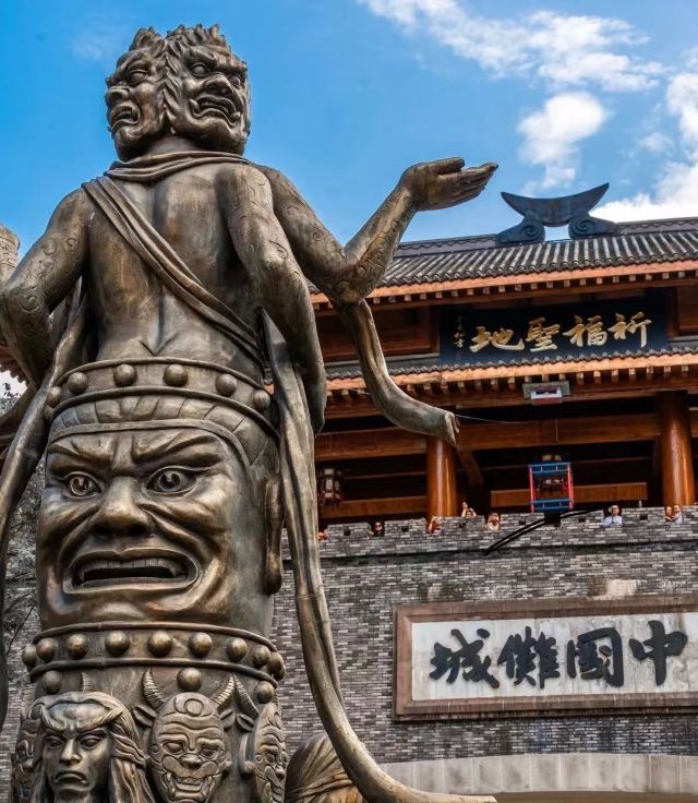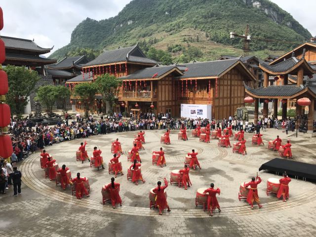 中国傩城是中国傩戏学会授牌的傩戏文化研究中心,是当今世界较大的傩文化古城。其整体布局契合金、木、水、火、土五行相生原理,融入福、禄、寿、喜、财祥瑞元素。在继承和发扬原始文化的同时,赋予其新的时代特征,以科学的规划和精心的打造,集中展示出傩文化的精髓。非物质文化遗产——傩戏,被称为“人类文明的活化石”,是远古时代图腾崇拜时期的一种祭祀仪式。傩戏、傩祭、傩舞承载着仡佬族人祈福纳祥的美好愿景。