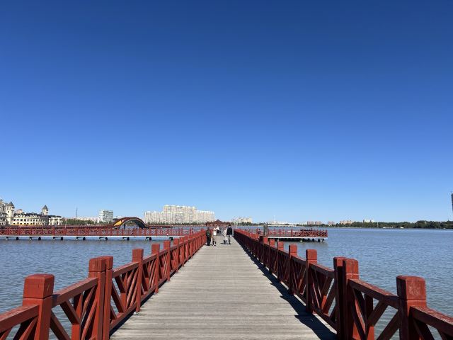 5分 超棒很美,可以到湖边溜达溜达,走一走湖上的木桥,夏天吹吹风感觉很暇意,夏天要注意防蚊哦,大庆有水的地方蚊子有点多!