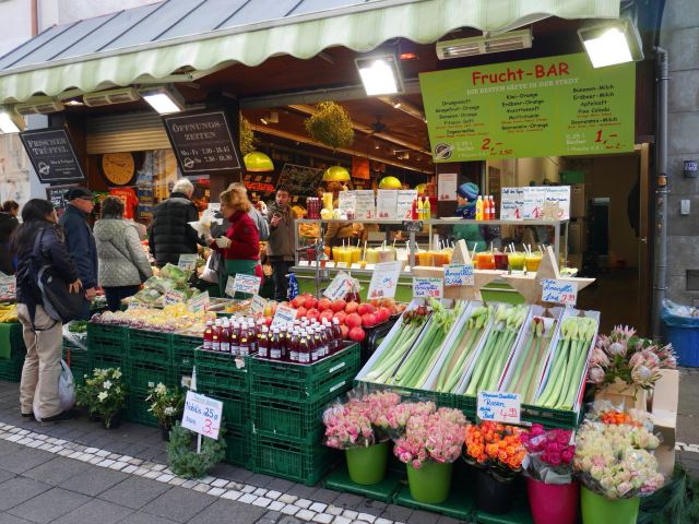 在市中心靠近大学和luisenplatz的marketplatz。每周五六会有小市场卖新鲜的蔬果。同时,市场周边有很多家餐厅:如moschmosch等