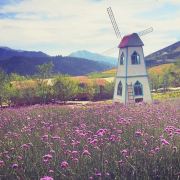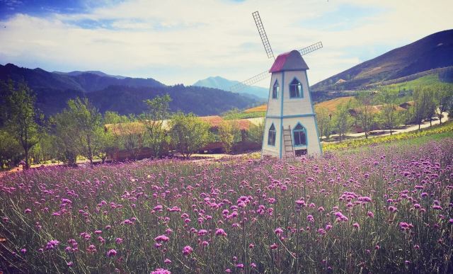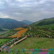 边麻沟花海景区位于大通县朔北乡边,站在半山腰远望占地600亩的花海景区,只见绿草茵茵的山坡上边麻花开的正艳。蜿蜒的木栈道串起一座座别致的小木屋,犹如童话世界。