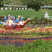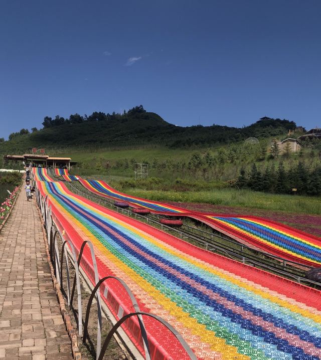 4分 满意花海整体不错,环境比较优美,有索道和滑道两个比较好玩的项目。滑道比较刺激,玩得时候要注意自身安全,抓好手扣。滑索下来的时候风景比较美。建议要来的话要点过来,这里来的路比较窄,停车位也不是太多。