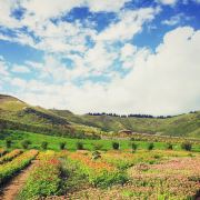 5分 超棒一片山坳中些花,不是很多。应该还在建设中吧。去的路比较窄,对向两车道,很容易堵车。