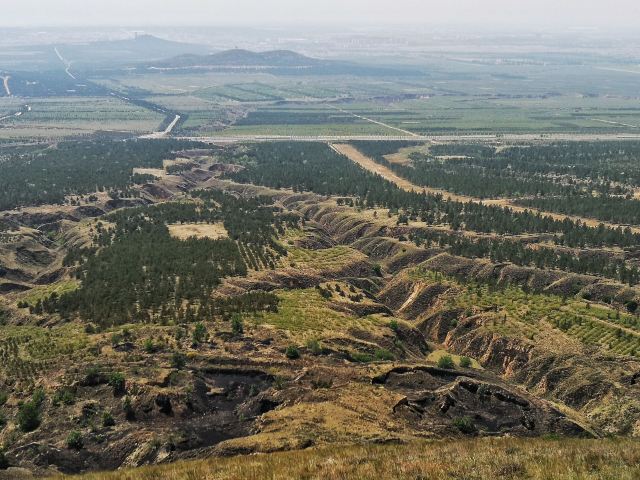 西区火山中火山口直径较为大者即是狼窝山,达500米左右,几乎呈正圆形状,山口深则平均达到30至50米,也是这里的火山群中火山口较为深邃的一座。昊天山是大同西区火山口自然维体较为完整的一座,在空中鸟瞰可以发现不到数十万年间水蚀作用在山体上所留下的一点痕迹。它坐落在大同县城的东北近郊,已经成为这个小县城的一处比较显著的自然标志物。