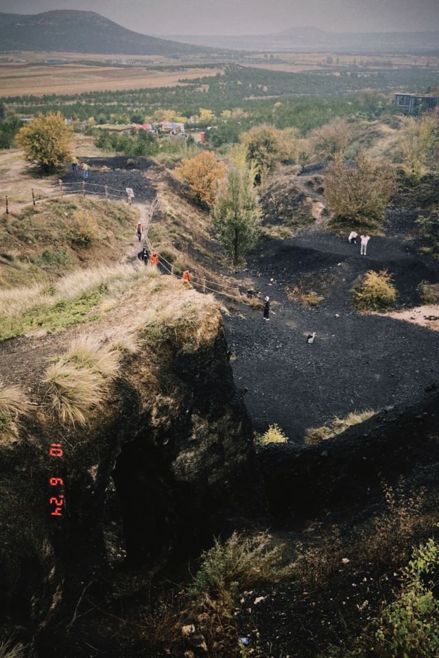 金山火山锥,更像是一颗正在夏夜夜空中灼灼燃烧着的明亮“彗星”,其“彗尾”不但生动而硕长(约300余米,为火山爆发时山口岩浆外流而形成),而且洁白闪光。再从高空俯看阁老山,它的形状像一枚金色的“桃心”,由于其四周布满了呈放射状的水蚀沟纹理,所以从“桃心”发出的“金光”就显得更为迷人。东坪山火山锥距离西区火山的密集地带较远,它坐落在大同县城正东约两公里以外,因为火山喷发时熔岩流朝着东南方向喷流,故而这个火山锥的东南部就留下了一个很明显的缺口,这缺口使得整个火山锥冠就像是一只惟妙惟肖的巨型、马蹄子。