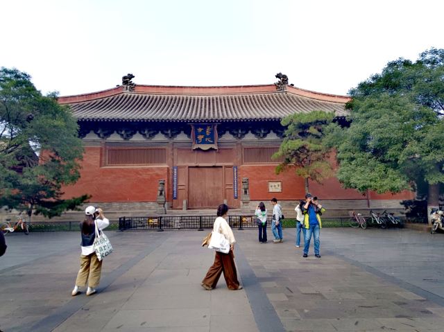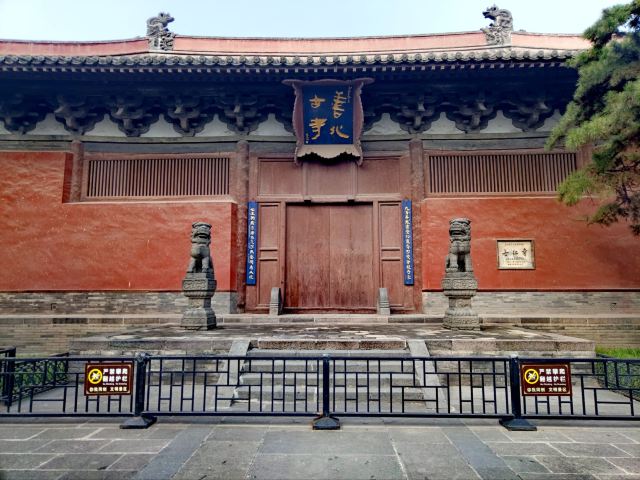 善化寺,位于大同市区西南方,始建于唐代,后毁于战火,辽、金时期开始重建。如今的善化寺是我国现存较为完整的辽金寺院。寺中的主要建筑善化寺-三圣殿、大雄宝殿等,都位于南北方向的中轴线上。和很多寺院不一样,善化寺是没有山门(大门)的。