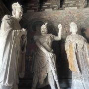 此外,寺中善化寺-三圣殿内的供奉着的“华严三圣”塑像,释迦牟尼佛和普贤、文殊两位菩萨,也是形象生动、栩栩如生。在寺门前的广场,你还能见到上世纪八十年代迁过来的五龙壁,五龙壁是明万历年间遗物,壁中五条巨龙翻腾于波涛汹涌的云雾之中,其中一条“正龙”,怀抱一颗火珠,头朝正前方,正对着古寺。