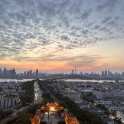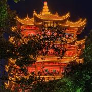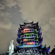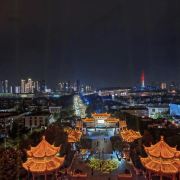 龟蛇锁大江,黄鹤楼位于蛇山之巅,登上主楼俯瞰,万里长江穿城而过,大江奔流的磅礴、城市夜景的绚烂,尽收眼底。