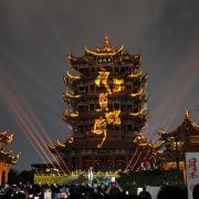黄鹤楼光影秀,用灵动的灯光展现厚重的历史。