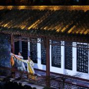 “眼前有景道不得,崔颢题诗在上头。”崔颢题诗李白搁笔,为了纪念这段诗人间的趣事,崔颢诗壁与李白搁笔亭相对而建。舞蹈表演每晚三场,身着古装的女演员在搁笔亭中起舞,曼妙舞姿有着盛唐的影子。看完搁笔亭的舞,转身便是崔颢题诗壁了。也不知日日面对崔颢的《黄鹤楼》,李白是否想出了更绝妙的诗。