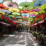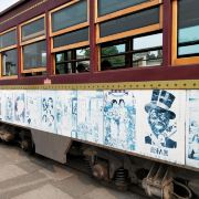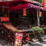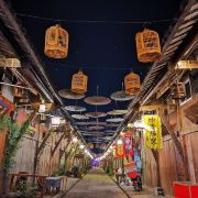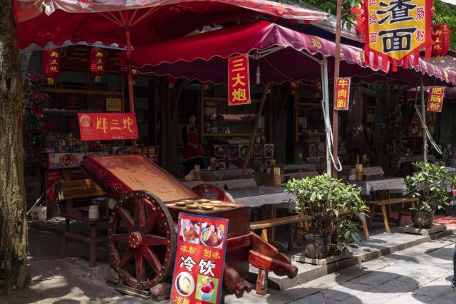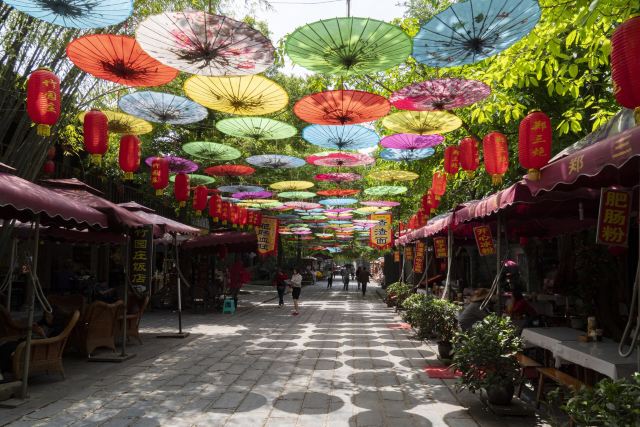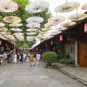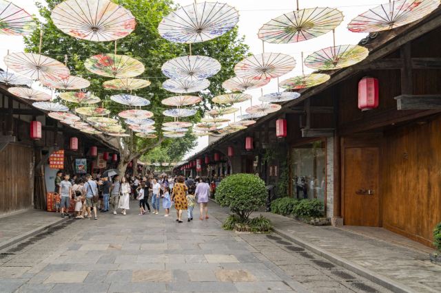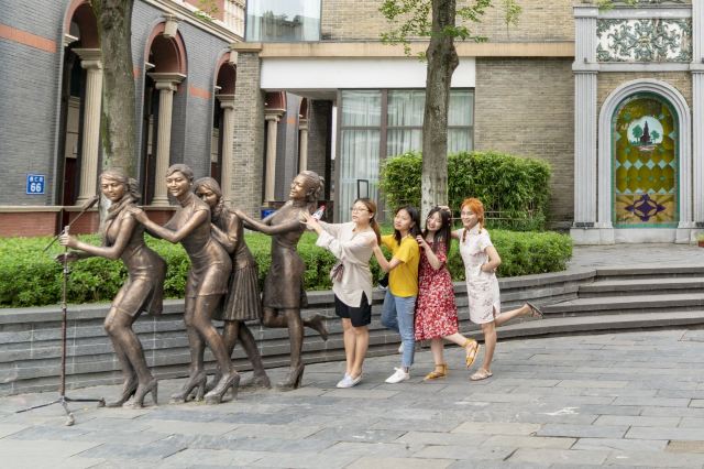 该风情街热闹非凡,街边张贴着具有年代感的海报、绘本,还有一个电影博物馆,里面展出的东西,多为不同年代的电影放映机,及胶片,复古气息浓郁。