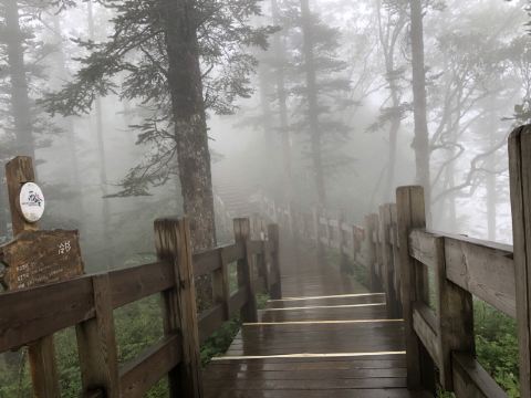 乘坐景区大飞水索道直达日月坪,轻松抵达高海拔区域。由此出发可徒步前往阴阳界(半山阳半山阴奇观)、滑雪场或红石尖,是长线游览的重要中转站。