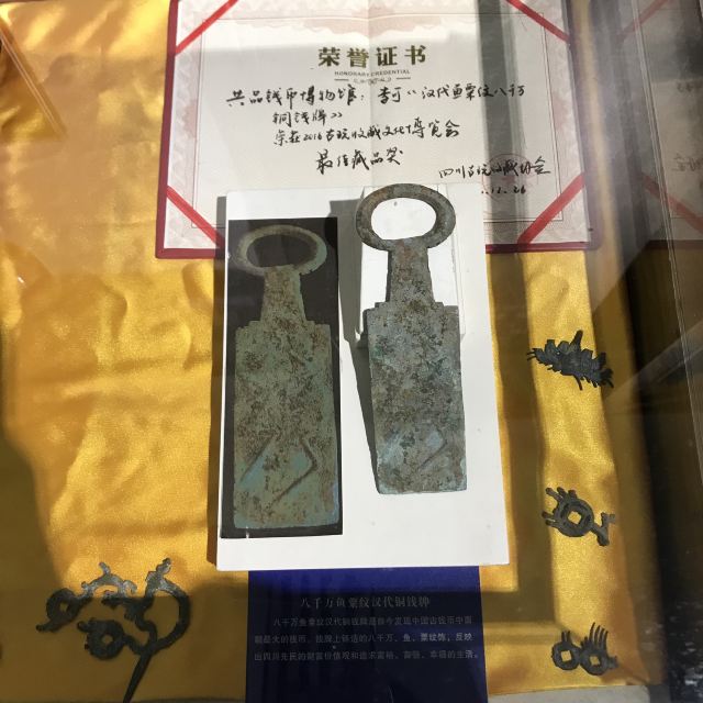 成都市共品钱币博物馆新馆坐落于有着浓厚历史文化底蕴的中国博物馆小镇——安仁古镇。博物馆建筑面积2000多平米,藏品万余件,目前设立四川钱币展厅、世界钱币展厅、银行卡展厅、日本经济侵华展厅、金融抗战展厅、二战同盟胜利展厅、一带一路展厅、交子印刷体验区、休闲厅以及文创产品商店。是一座集参观、体验、互动、休闲为一体的多功能博物馆。在博物馆的藏品中,有的是世界之,也有的是天下仅有,如世界上小的钱币——无字铜钱(南朝•四川铸),直径仅有2.3毫米;还有世界上面额大的铜币——八千万鱼粟纹汉代铜钱牌。同时,抗战时期的名人票据,放眼全国,成都市共品钱币博物馆都可以说是收藏丰富、全面的。除此之外,还展出了与经济相关的各类藏品,如四川各个时期的货币、世界各国的钱币、银行卡以及抗战时期的各种债券、票据等等。这些藏品各个年代,各种材质,各种用途,在漫长的几千年历史中,传承演变,保留至今,无不彰显出人类的智慧结晶和钱币文化的源远流长。钱币,其功能大于艺术,可加入历史的脉络,世界的视觉,呈现出文化的特性,拥有历史与艺术气息。穿梭于博物馆内,与不同的贝币、金币、铜币、银币、纸币、各种老物件近距离接触,它们就像一个岁月的虫洞连接属于它们的时空。