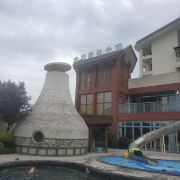 成都大邑县西岭雪山景区脚下的花水湾温泉度假区,四面环山,气候宜人。花水湾温泉形成于远古四川盆地海陆变迁时期,发掘于地下2800多米处,水温高达68度,富含硫磺、碘、锂、偏硼酸及氯化纳(古海水)等珍稀矿物质。