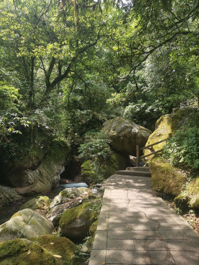 整个景区从海拔1260米的茶地坪逐步上升到1720米的五彩瀑布,全部游程为徒步旅游。春赏百花夏避暑,秋观彩林冬踏雪,四季盛景,尽在秘境。这里距成都市不足100公里,是摄影、写生爱好者、动植物科普爱好者、户外登山运动、森林康养度假的天堂。