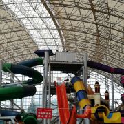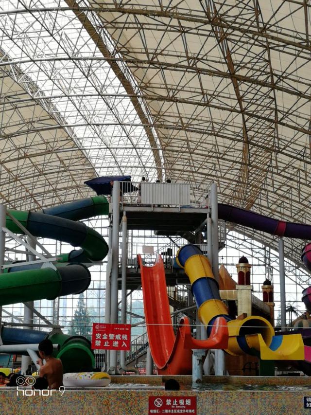 5分 超棒前年夏天🏖和表妹坐动车🚄去的,那天是表妹15岁的生日🎂,出站还要坐大英5路公交车🚌,上车一元💰,半个多小时就到了,还要走5分钟到景区大门,在门口买了两个头枕和水晶泳圈,都是粉色的,之后就进去验票并额外购买了一张48元💰的黑泥票(仅限成人),室外是一个大的冷漂池(含滑梯)和一个淡水泳池🏊🏻,但冬天❄️不开放,只开放玻璃船,冷漂池旁边有一个城堡,叫黑泥宫,但要提前预约,旁边还有好玩的蓬莱飞仙,室内是一个天幕顶,遮风挡雨,名字叫一千零一夜水上世界,有各种水滑梯、(封闭半封闭管道、大碗、山地滑坡)漂流河、儿童戏水区、大摆锤、(非水上项目)小盐卤热漂池、温泉功能区、冲浪🌊池、(供万人冲浪🌊,冬季❄️不开放)黑泥馆(仅限成人,未成年人勿入,以前是允许的,可带手机,勿拍照📷只能电联,需另收费💰,在景区门口售票处买便宜)、法老餐厅,(可现金💰手机支付另付费用餐,有当地的特色菜。)室内所有水上项目一年四季都是恒温的,除了冷热漂是盐水以外,剩下的都是淡水,放心游玩,冷热漂浮池谢绝有伤口人群进入,池边有工作人员看守,建议大家在景区门口买个头枕防止盐卤水入眼口鼻,如不慎盐水入眼,可向池边工作人员举手示意,去旁边的医务室进行处理,冲浪🌊池开放冲浪时间:上午10点半、下午2点半及4点半,建议大家避开节假日来,节假日人太多了,下饺子一样,自己都不知道该往哪站了😂,其他时间不开放,但可游泳🏊🏻,大摆锤值得体验,两个字刺激,定期有老外才艺表演和比基尼👙美女走秀表演等,下午有泡泡派对供大家游玩,大碗没有体验,不会游泳,山地滑坡好玩,刺激,玩完之后我俩饿了,就去法老餐厅点了两份土鸡米线🍗🍜套餐,(米线、饮料🍸、咸菜)吃完之后我让表妹接着玩,有事电联,就去二楼黑泥馆体验黑泥敷在身上的感觉,虽然黑泥有点臭,但技师小姐姐说对皮肤好,盐疗及禅修🧘♀️没体验,不知道多少钱,盐康体spa需提前预约,需要用到植物精油🌿🌹🌺,时间一个半小时,价格300多,我俩直接在门口坐公交和动车回重庆了,下次还要来,和姐姐一起去,姐姐会开车🚗,不足的是营业时间太短了,下午六点就清场了,希望能延长到原来的晚上11点,建议大家自带毛巾、食品,景区谢绝接待未满3周岁婴幼儿超7旬老人孕妇等特殊人群,以免发生意外,带来不便请谅解!如隐瞒实情年龄贸然进入景区游玩发生意外后果自负,与景区无关。