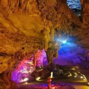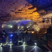5分 超棒“人少景美,体验独特”:如果你喜欢清静,早点去景区,很有可能“承包”整个溶洞。这里最吸引人的是能在巨大的石膏洞中乘车游览,这种体验在别的溶洞可不常见,感觉像进行了一场奇妙的“地心穿越”。
