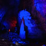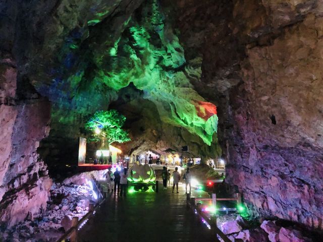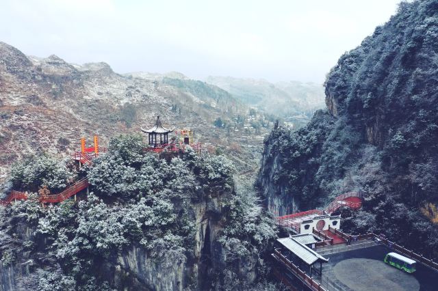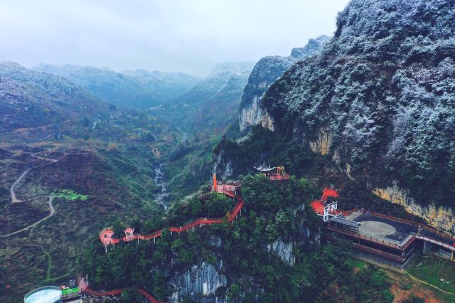 五彩洋山河景区位于贵州高原的东北部的德江县,是峡谷风光型,旅游资源丰富,有险峻陡峭的山体、神秘的原始森林、奔腾的谷底溪流、浓郁的土家族风情,具有较高的旅游欣赏、科学考察和历史文化价值,是一个旅游胜地。景区还设有多种交通方式,索道、观光车、玻璃吊桥等,集观光体验于一体。【千里目】观音峰不远处有一处玻璃观景平台,整体落差高度超过了玻璃吊桥,站在这上面往下看,令人头晕目眩,但是也能一览景区全景。此平台约64平米,可承载300人。【傩仙洞】作为景区内核心的景点,洞内处处有景,环境优美,灵秀典雅,景多集中;洞内钟乳石琳琅满目、形态各异,绚丽多姿,红色河水、黑色河水、乳白色河水、瀑布、梯田、石幔、美不胜收;红、白、黑三色石花犹如天女散花;石禽、石兽、石佛、石猴唯妙唯肖;晶莹透亮的石花、石果、石蘑菇、石葡萄令人垂涎欲滴;大小洞厅光怪陆离,典雅秀媚,如同大雄宝殿;大自然创造的艺术宫殿令人惊叹不已!【五彩河】是景区精华所在地傩仙洞中的一大特色景点,分为黄色河流、红色河流、青色河流、白色河流以及黑色河流,从溶洞中贯穿而过。由于傩仙洞是世界少有的酸性溶洞,各种化学物质与酸性地下河水发生化学反应生成不同颜色的沉淀物,从而形成了五种不同色彩的地下暗河。凭借如此奇观,多年来吸引无数游客前来游览参观。作为峡谷风光型景区的典型代表,五彩洋山河景区融合了“奇”“险”“美”三大特色,峡谷整体落差200米左右,植被覆盖率达高达80%以上,【悬崖栈道】依崖壁而建,远眺观美景的同时俯身往下看,还能体验到一种惊险刺激的感觉。60度全视角透明玻璃游步道——【云漫桥】悬挂于两山之间。玻璃吊桥具有跨越、旅游游览和景观功能。