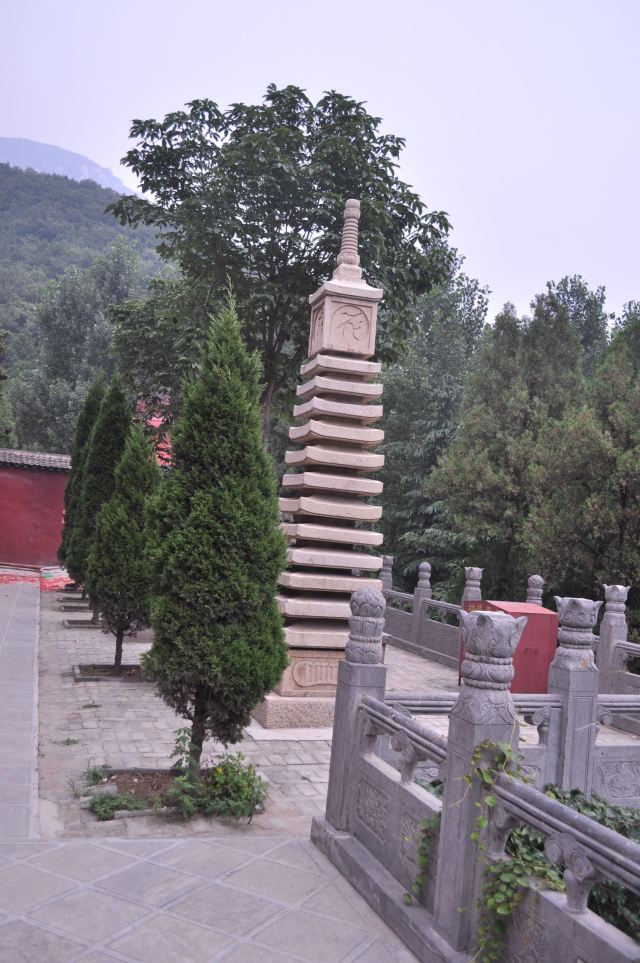 舍利塔前有僧人练武的梅花桩和器械。寺院前院有客房,门口有当地知识老人做免费讲解。