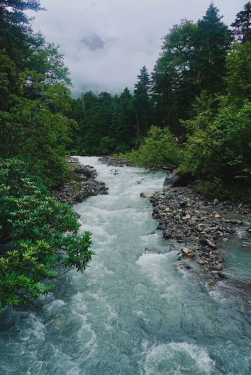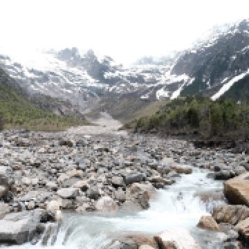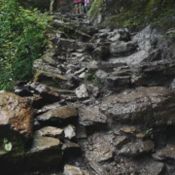 从雨崩村去神瀑来回大约4-5小时,这是三条线路中难度较小的路,除了后面有几个较陡的坡,前面几部以平路为主,是条初级徒步路线。体力较差的人至少要来一下神瀑,不然就真的白来雨崩村了。神瀑的水量不大,下面是一片石滩,可以走到瀑布底下,按照藏族的传统顺时针绕瀑布走三圈祈福。这里常会遇到转山至此的藏人,也许神瀑的风景比不上冰湖,但信仰赋予了神瀑意义,即使你没有信仰,也会感到肃然起敬。