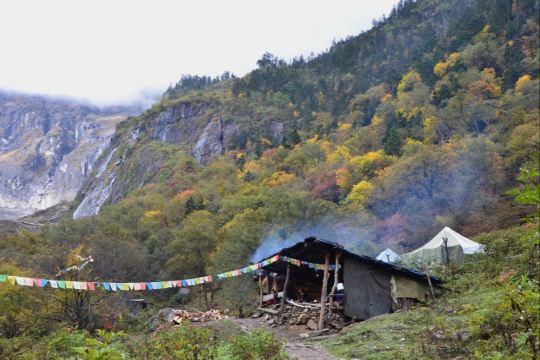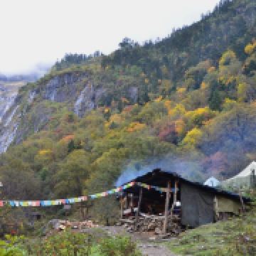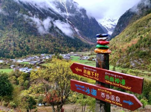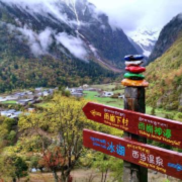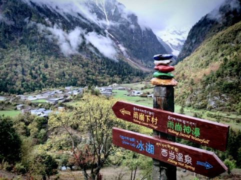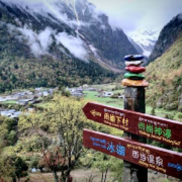 去冰湖的徒步难度不亚于进雨崩村,来回大约需要一天。沿路有许多岔路,但已有许多前辈在岔路做了标记,所以不太会迷路。但这段路较为难走,保险起见可以请一位向导。