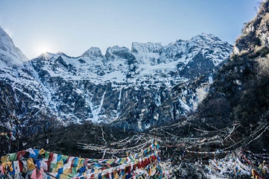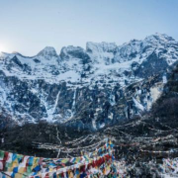 雨崩村是拍摄神女峰景色的好地点之一,天晴时,拍摄位置是南宗垭口和雨崩上村的梅里客栈和徒步者之家,以及雨崩下村的神瀑客栈。