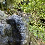江南碧坞景区融清、凉、幽、绿为一体,有天泉瀑、青龙古桥、摸石潭、夫妻银杏树等景点,是避暑休闲的胜地。