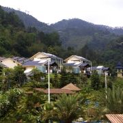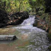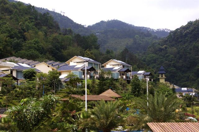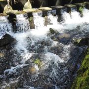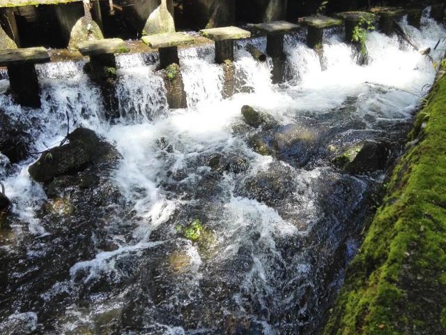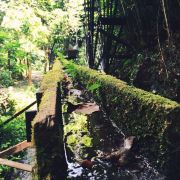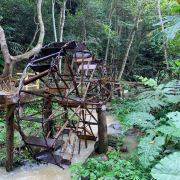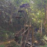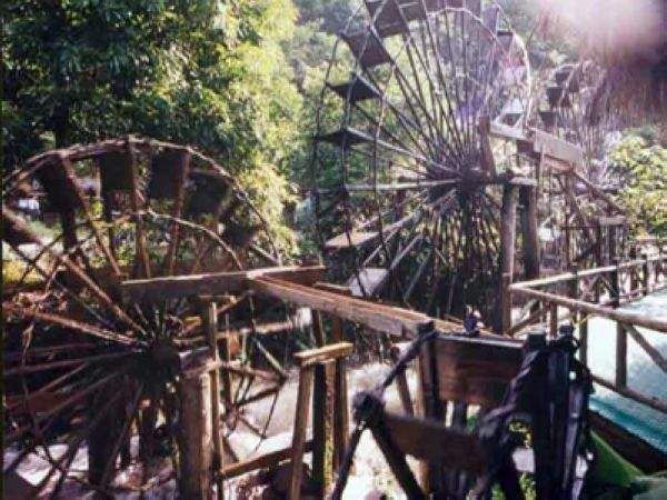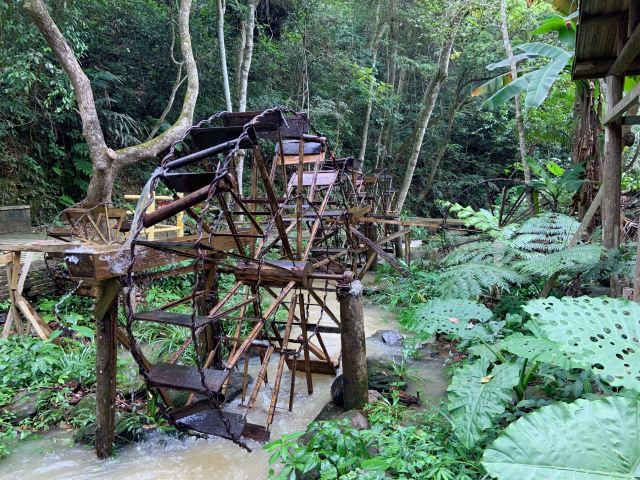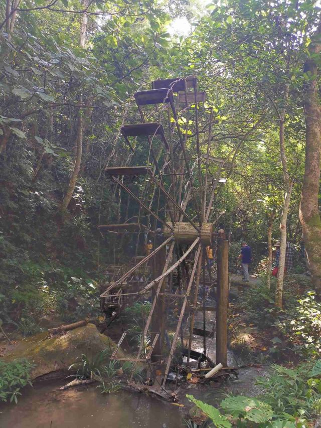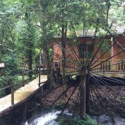 旅游巴士将游客载到半山,往上是酒店别墅,未曾踏足,往下是喘急溪流,沿途风景秀丽,山涧溪流中的大水车成为一大亮点。