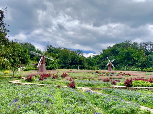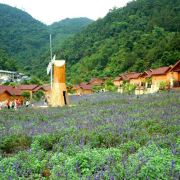 游览过盘龙峡谷后往下走就是薰衣草世界,一眼望去,田地中种满了不同品种的薰衣草,有羽叶薰衣草、狭叶薰衣草、齿叶薰衣草等。不同的花朵不同的味道,羽叶薰衣草更是不分季节地绽放着,当然薰衣草盛开的季节还是春季,这里的春天格外的美丽。