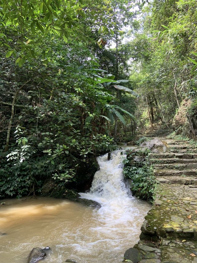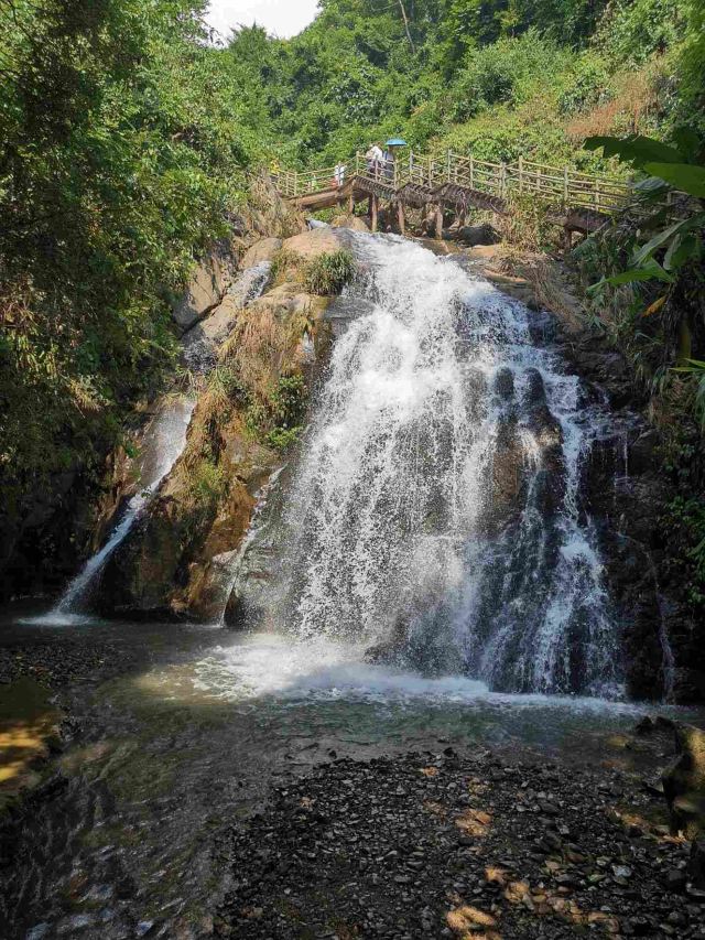 落差较大的水流形成瀑布,溅湿的衣物在提醒着我们赶紧拍完照流给下一位[偷笑]