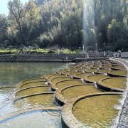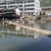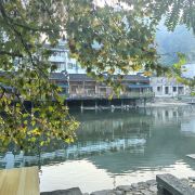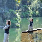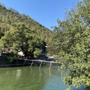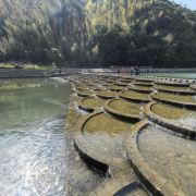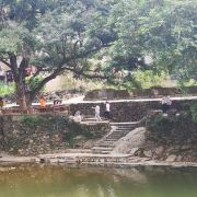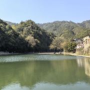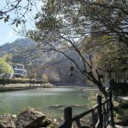 古镇尽头是卧龙潭,没想到潭水是绿蓝色,像是九寨沟的水。