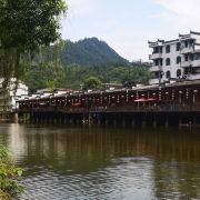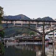 除古建外,古镇的桥亦有看点。镇口是多孔瑶河飞渡拱桥,镇中的廊桥,还有几座平板木桥(想起爱情公寓中打桥牌,悠悠和关谷叫出的的平板桥、立交桥、拱桥,哈哈),这些桥梁及其河水也是取景拍照的好地点。