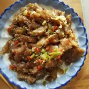 古镇的特色菜:苦槠豆腐(浅棕色,像魔芋),笋衣或冬笋烧肉,腊肉炒水芹,不过不要期望肉多。