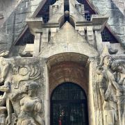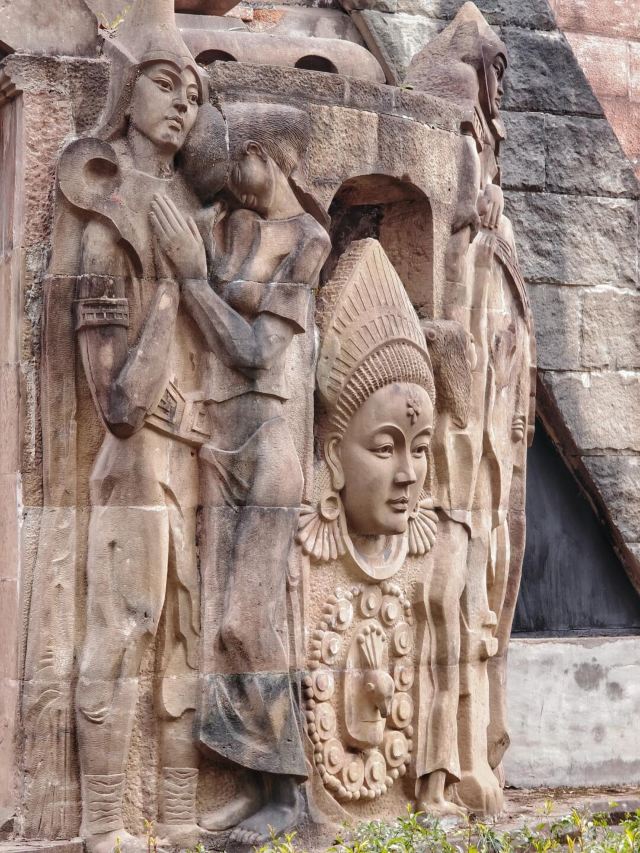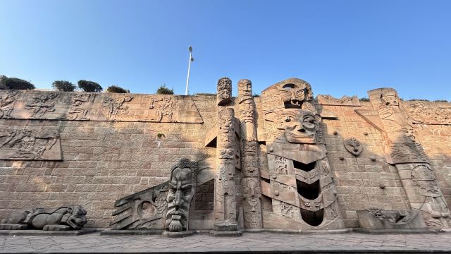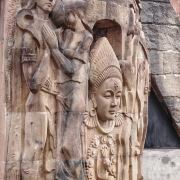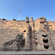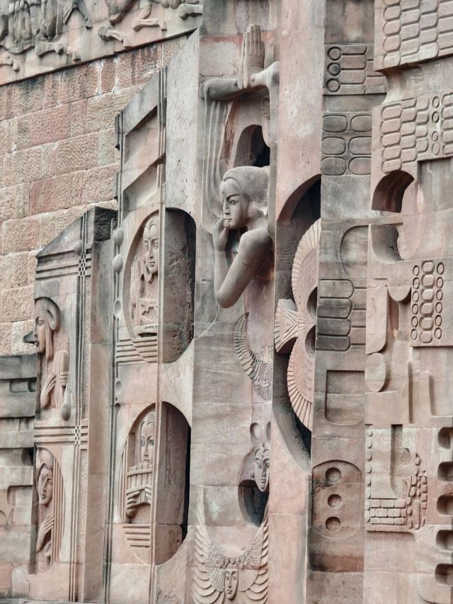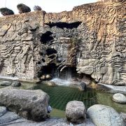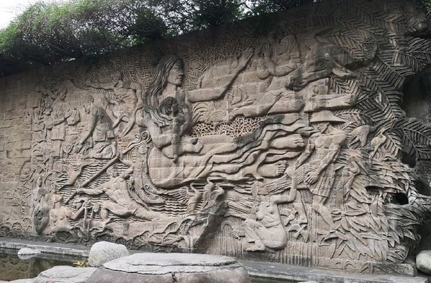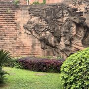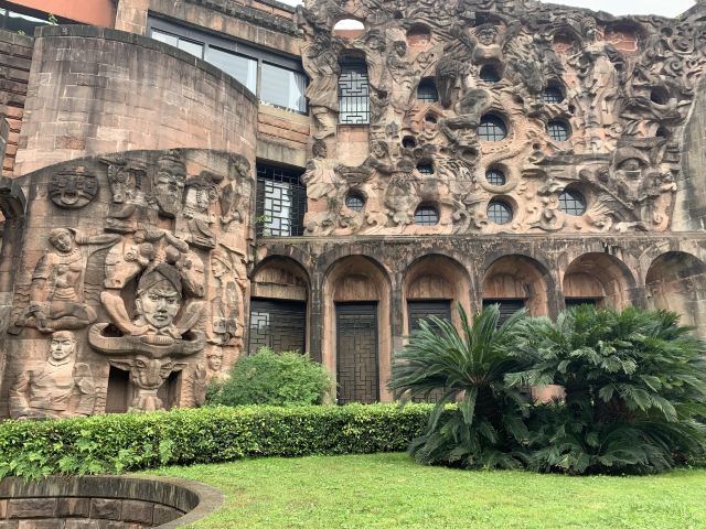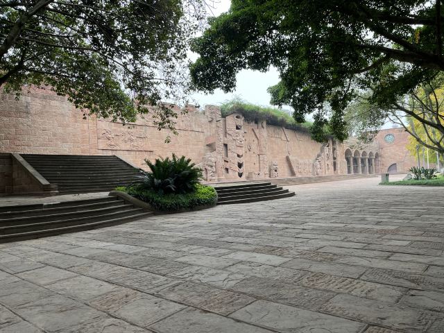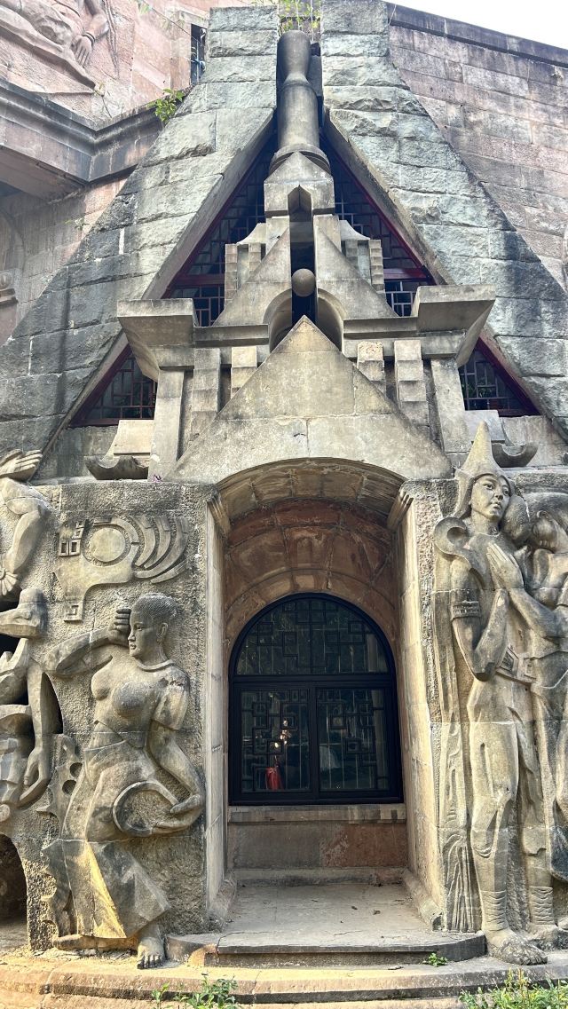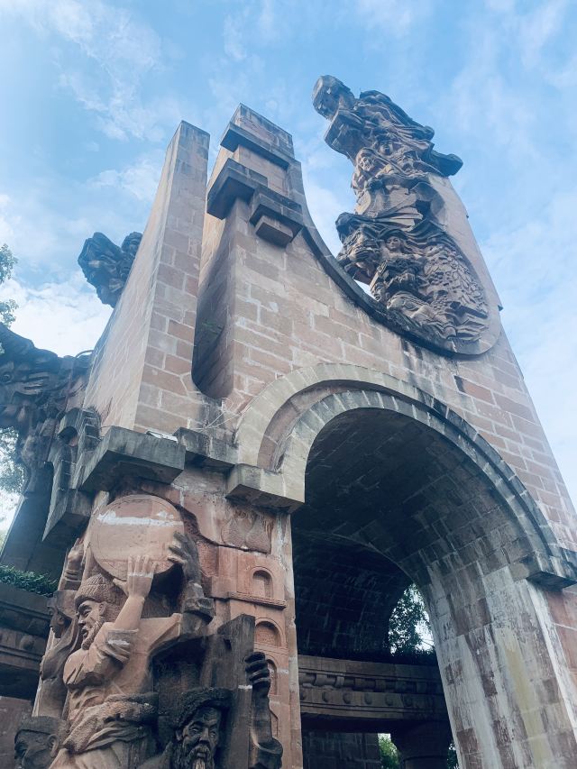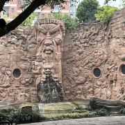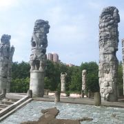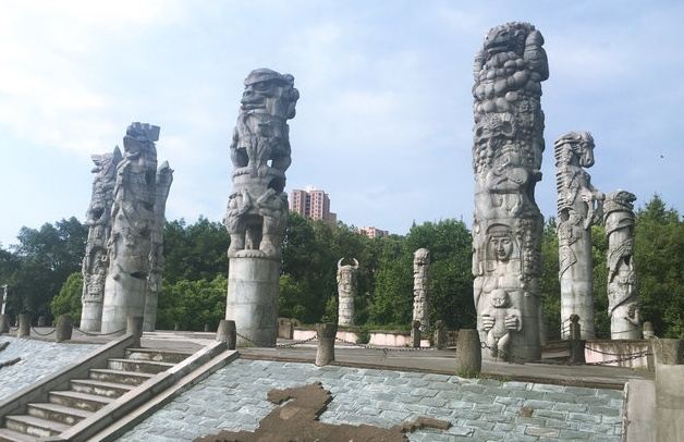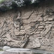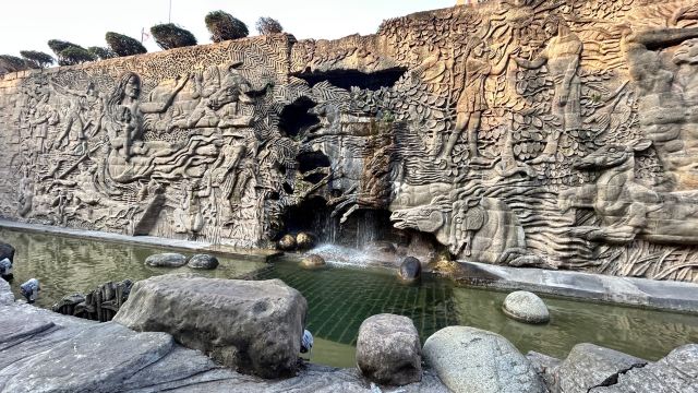 3.看点:(1)石刻群。由川美老师打造,基于一堵石墙创作的《中华魂》、《东方魂》两大主题石雕。《中华魂》可以看做古代中国史杰出人物造像,展现成吉思汗、汉武帝等一干人物英武形象,又有各种神话,如共工怒撞不周山、女娲补天、西王母幽会周穆王的展示,题材丰富、表现大胆,男女性别特征尤为明显,在那个年代,属实算的上前卫了。《东方魂》可以看做讴歌新中国的红色石雕,56个民族齐上阵,各种展现民族特色的服饰与建筑杂糅一起,目不衔接、很正能量。