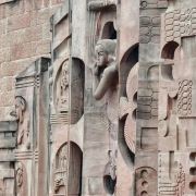 石刻艺术墙坐落在德阳市内泰山北路干道旁,由牛门、生命之歌、艺术长廊、智慧之光、中华魂、十二生肖大柱等景观组成,以自然、生命为表现主题。