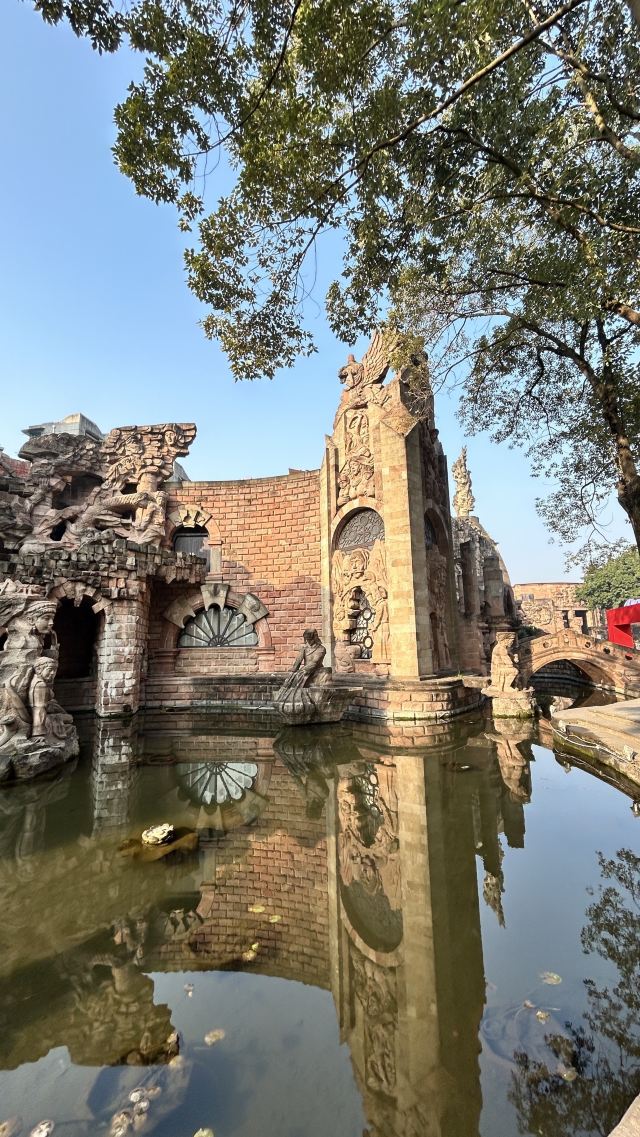 [糖果]整个艺术雕塑群,技法非常多样,集圆雕、浮雕、透雕与建筑、园林、水景、灯彩为一体,最大限度渲染了石刻的魅力,被马识途誉为“中国没有,世界少见”。(4)其它。园区还有荷花池、古榕树、各种武校、文艺培训等,我没有逛完,实在走累了。