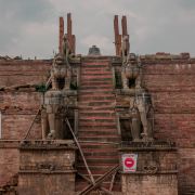 尼亚塔波拉神庙是广场的标志,这座五层宝塔直插云霄,近千级台阶旁,神兽、力士雕像威严伫立。