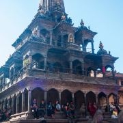③塔莱珠女神庙:始建于1553年(明嘉靖三十二年),是此区域最古老的建筑,当时共建了99个庭院,目前仅剩6个,即摩尔庭院、白拉布庭院、伊加塔庭院、马拉蒂庭院、希迪庭院等。非印度教教徒禁止入内,且严格禁止拍照,有士兵看守,门上的木雕极其精美,可惜无法拍下来展示,透过门可看到里面是个四合院式大庭院。建筑内供奉着马拉王朝的守护神塔莱珠•巴瓦尼女神,又称童女神,是在几名4-7岁、没有流过血生过病、无胎记、牙齿整齐等特点的释迦族女童前制造惨像、恐怖场景等,其中面无惧色、无忧无喜的女童便会成为新一任活女神加以供奉,待到她月经初潮后再更换,而库玛丽在印度语中意为处女,目前活女神的化身名为库玛丽……