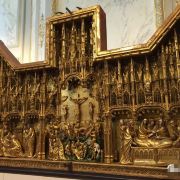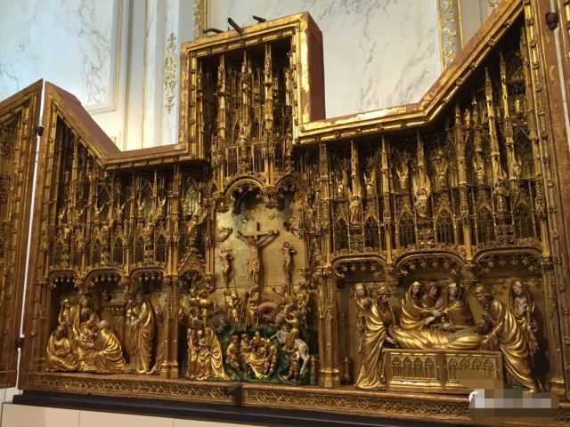第一次来到公爵府所在的第戎美术馆,印象最深的一个展品就是这个祭坛屏风了。当时美术馆还在修缮之中,展品都是临时摆放陈列,参观空间局促狭小且照明不佳。转过一个室内的楼梯后,迎面是一个巨大的木刻祭坛屏风,里面描画的人物不甚了了,只是为前后景里的哥特式的装饰所深深吸引。