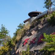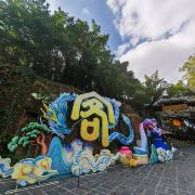 客天下景区你会发现有很多壁画雕塑,其实他们都是根据地形改造而成的,以前这里是寸草不生的矿山,现在景区在原基础上绿化,才打造出这样美丽的景色。