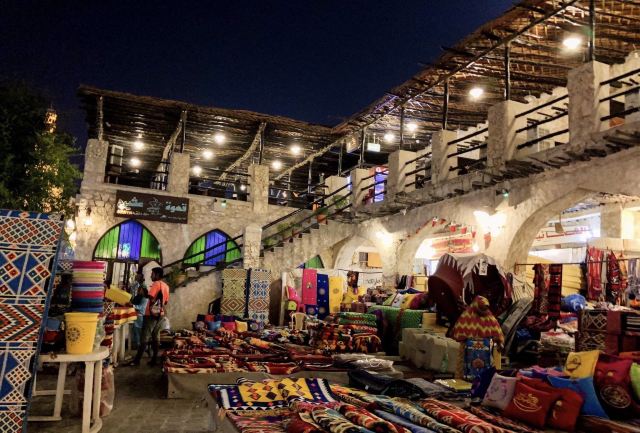 瓦其夫传统市场,是卡塔尔面积比较大,年代比较久,具有海边贝都因人集市特色的聚居地。瓦其夫熙熙攘攘的街巷中处处体现了卡塔尔传统生活和文化。其间星罗棋布的小店摆满了琳琅满目的中东特色商品,既有实用商品,也有华丽物件。从鞋履到古董再到手工艺品,集市汇聚了该地区的各式商品,让喜欢寻宝的人士收获满满。还有垂钓和潜水采珠设备、各式针织面料、毛毯、木制家具以及邻近工坊制作的玻璃装饰品令人目不暇接。