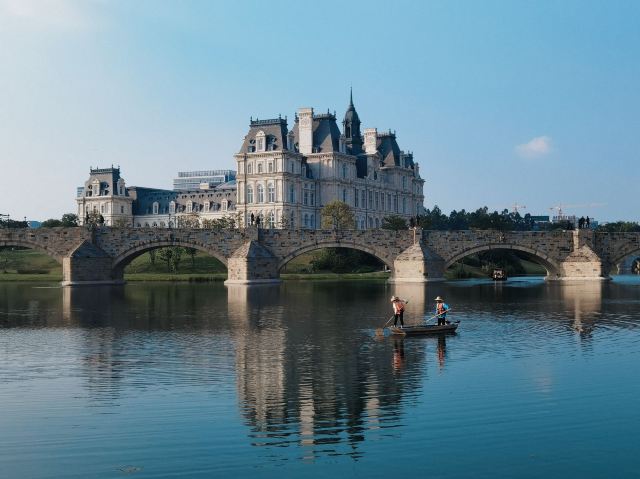 5分 超棒华为欧洲小镇坐落于东莞松山湖畔,是一座耗资百亿打造的“科技+旅游”综合体,占地约1900亩,以12个欧洲经典建筑组团为核心,复刻了牛津、布鲁日、维罗纳等地的地标景观,形成独特的“时空穿越”体验。园区内绿树成荫,桥梁交错,小火车穿梭其间,游客可沉浸式感受欧式田园风情与红砖城堡的浪漫,夜晚灯光璀璨更添梦幻氛围。