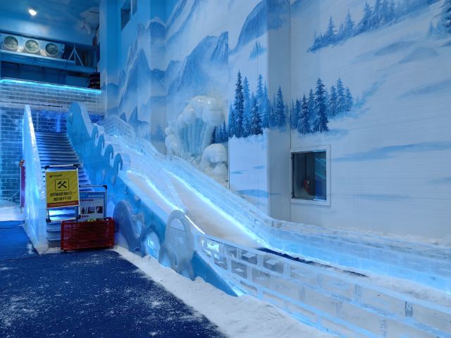 是真的冰天雪地 一点要注意保暖 手套特别重要 暖宝宝他们也有在卖建议来一个。拍拍照滑滑梯一个多小时过去了二楼还有餐饮区设施还是一应俱全的。这几天赶紧冲一波!