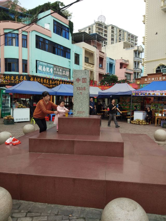 这里庄严肃穆,五星红旗高高飘扬,下方的街道上屹立着大清国钦州界五号界碑,随着1369号界碑的设立,它已不再是真正的界碑,但仍具有重大的历史意义,与其合影的游客数不胜数。